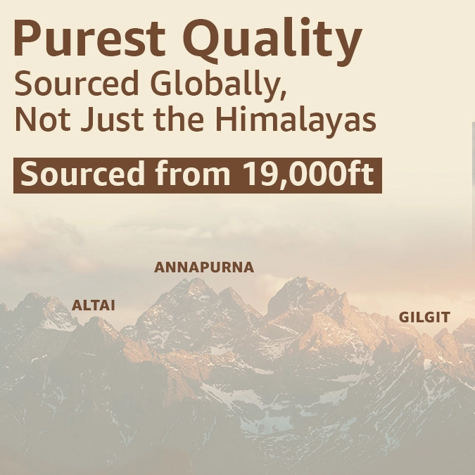Natural Shilajit Resin is attained through a sophisticated all-natural process, sourcing the purest form of Shilajit. Shilajit contains Fulvic acid, Humins, and Humic Acids, which have antibacterial and antiviral properties. The ultimate culmination is a perfect blend of essential minerals and nutrients to restore your balance.