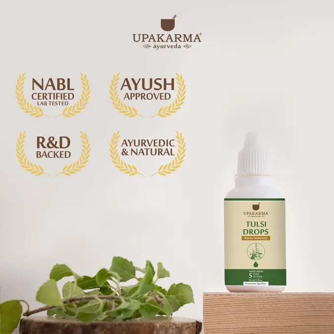 Upakarma Ayurveda Tulsi Drops 30ML is a premium ayurveda product which is one of the best natural remedies to keep you healthy without any side effects.